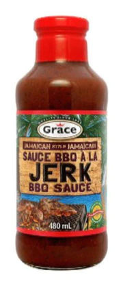 Grace Jerk BBQ Sauce spices up your grilled meats with this zesty combination of jerk seasoning and BBQ sauce. 16 oz.